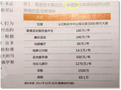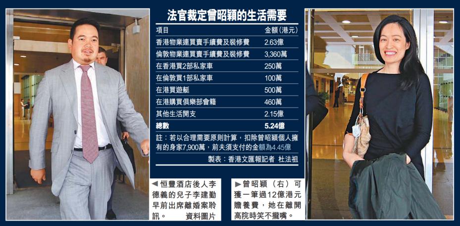 本文讨论的香港豪门离婚案法官最终裁决由于李建勤夫妇离婚前的生活水平,仅次于以美金计的亿万富豪生活,所以曾昭颖离婚后应继续在香港及伦敦享有自住物业、私家车以及在香港买入游艇俱乐部会籍