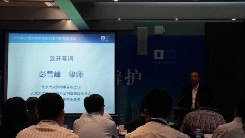 北京大成律师事务所刑事辩护高峰论坛2014年9月27日在北京总部召开,刑法学名家陈兴良教授、刑诉法名家陈瑞华教授以及国内多位著名