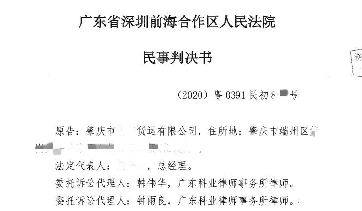 | 该货运公司的负责人得知判决后表示十分满意:科业律师团专业的办案技能和不畏艰辛的精神让人佩服,能聘请到这么专业的律师团作为我们公司的法律顾问,是我们的荣幸!非常感谢科业律师团!! |