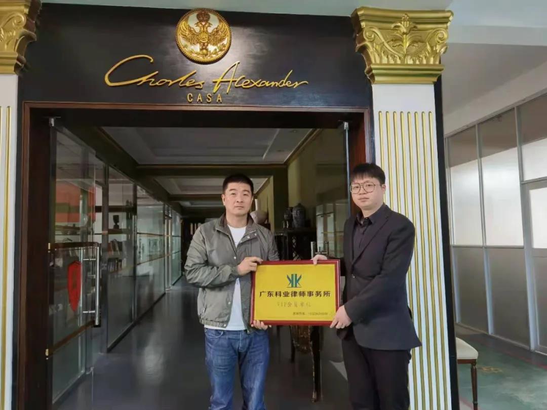 近日,广东科业律师团资深律师代表胡雨墨律师来到了肇庆市查尔斯亚历山大家居有限公司,为其进行了法律VIP会员的挂牌仪式,并参观了该企业运营情况,解答了其常年的法律问题。