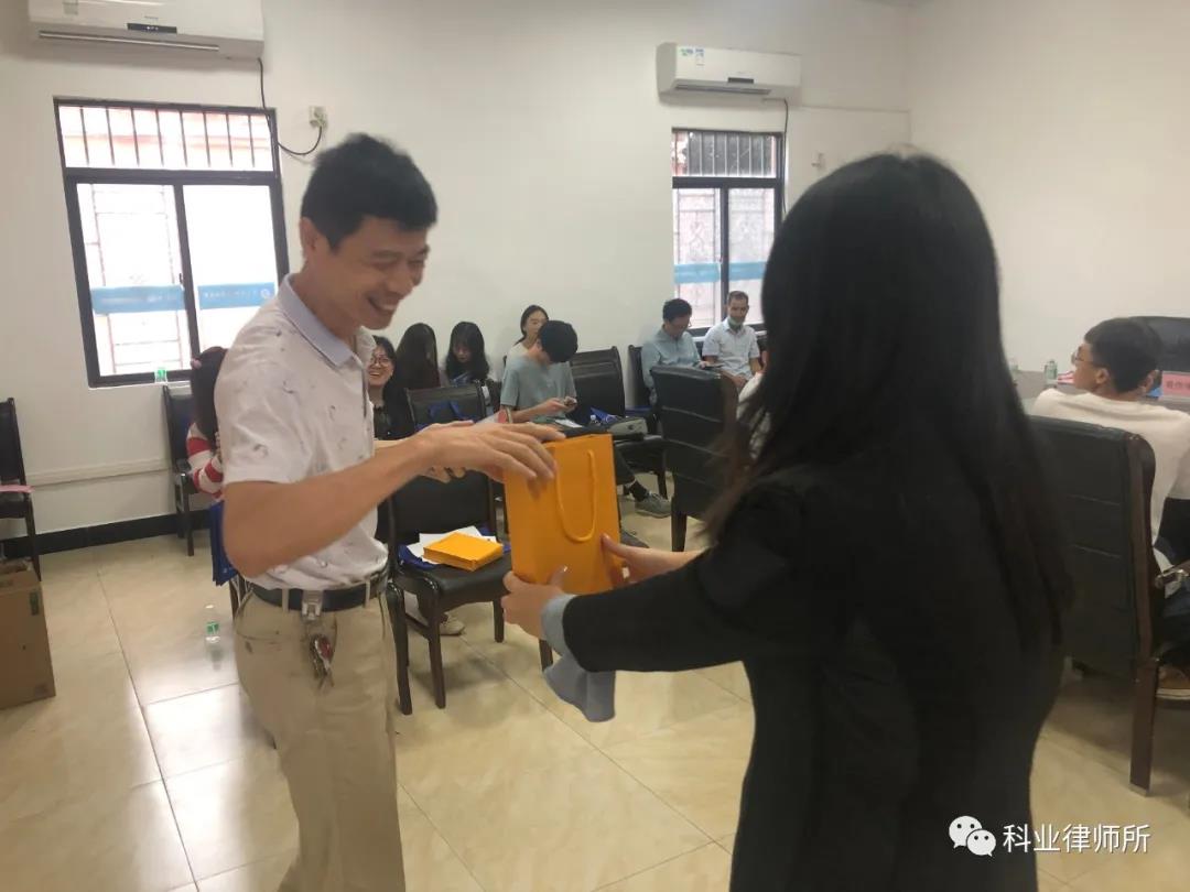 (上图:互动环节,科业所为踊跃回答法律知识问答的人员派发小礼物)