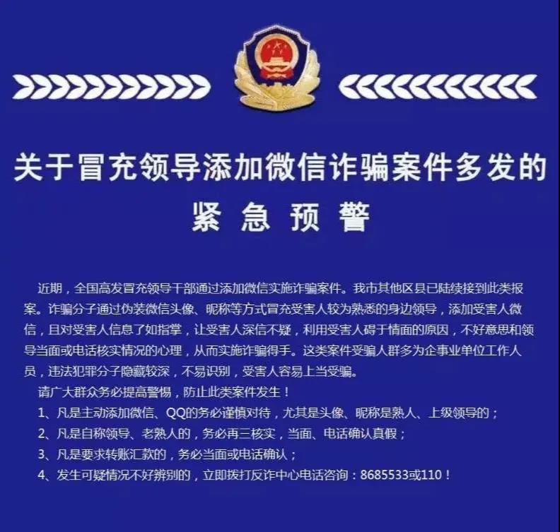 会上再次提及微信冒充熟人诈骗案件,在此公安郑重提醒: